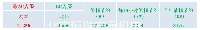 對(duì)空氣處理系統(tǒng)置換一臺(tái)風(fēng)機(jī)測(cè)試,每小時(shí)節(jié)能1.6KW,按使館每天運(yùn)行14小時(shí),商用電費(fèi)1.4/KW.h計(jì)算,僅這臺(tái)風(fēng)機(jī)每年大約可以節(jié)省11446.4,后期使館57AHU系統(tǒng)將全部采用恒瑞宏晟提供的改造方案,將會(huì)每年為用戶節(jié)約近百萬(wàn)的用電成本。