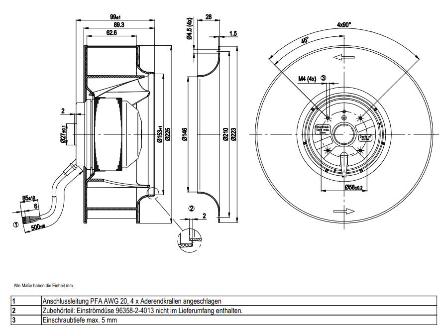 R2E225-BD40-21 風(fēng)機(jī)為后向離心風(fēng)機(jī),帶向后彎曲葉片的 ebm-papst 離心風(fēng)扇主要用于吸入。由于大部分壓力積聚發(fā)生在葉輪中,因此通常不需要滾動(dòng)殼體。離心風(fēng)扇具有非常好的液壓效率和低噪音水平,非常適合高壓。 除了節(jié)能之外,集成控制電子還可以實(shí)現(xiàn)控制、監(jiān)測(cè)和維護(hù)功能。