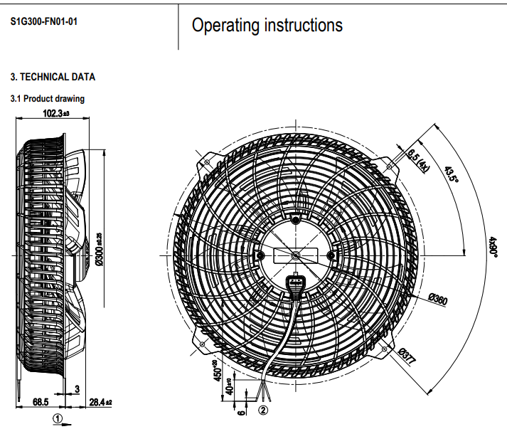 原裝正品軸流ebm風機S1G300-FN01-01的規(guī)格圖