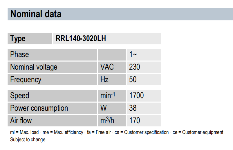 RRL160-3038LH max.210m3/h
