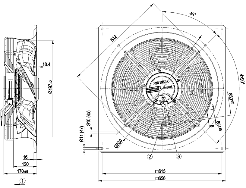 原裝正品軸流ebm風(fēng)機(jī)W3G500-GN33-01的規(guī)格圖