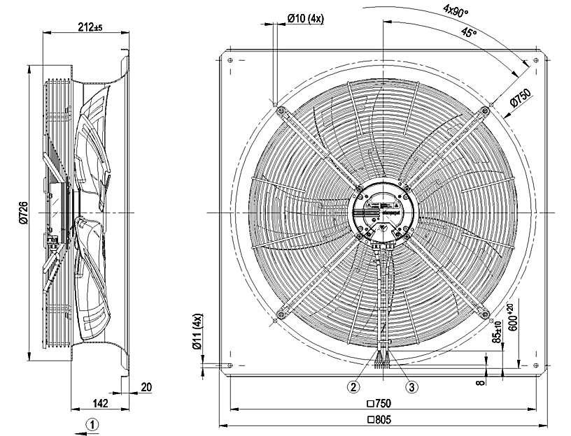 原裝正品軸流ebm風(fēng)機(jī)W3G630-GC52-51的規(guī)格圖
