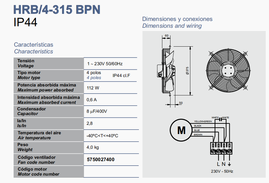 產(chǎn)品型號: HRB/4-315 BPN 5750027400