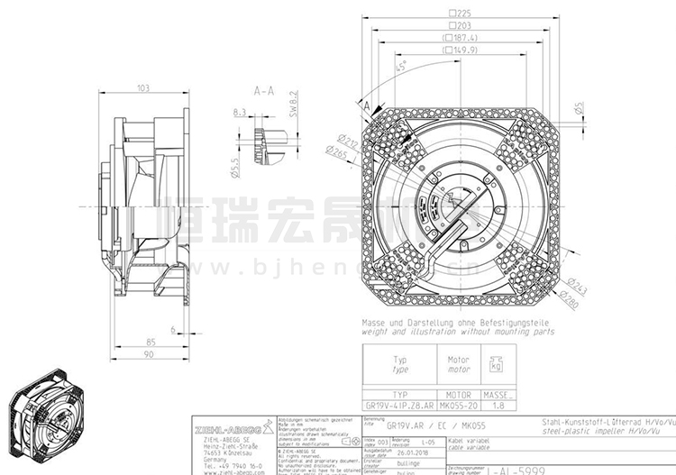 施樂(lè)百ziehl-abegg 離心風(fēng)機(jī) GR19V-4IP.Z8.AR