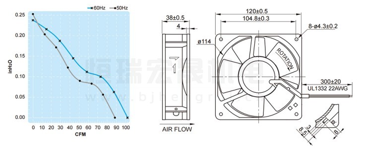 UF12AM23BTHF FULLTECH 福佑風機結構風量圖: